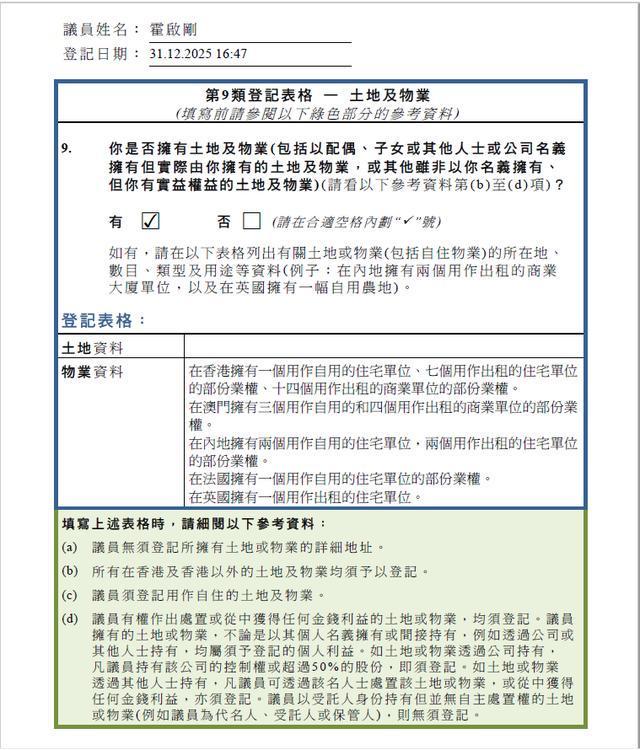 近日,香港新一届立法会议员个人利益申报出炉,90名议员的申报表已上载到立法会网页。 霍启刚申报持有35个物业 根据财产申报细节显示,不少议员在内地和海外都持有物业,其中连任立法会议员的霍启刚申报持有3... 全文