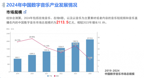 《中国数字音乐产业报告(2024)》发布:中国数字音乐市场总规模约为2113.5亿元,同比增长10.8%